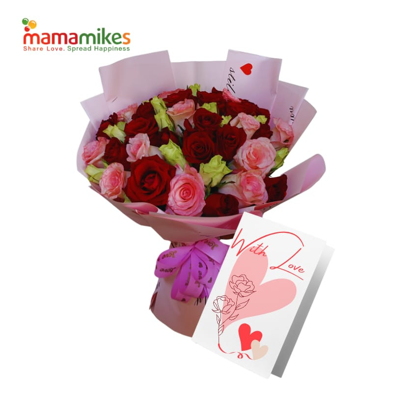 Beefeater Pink (750mls), Lindor Chocolate, 50 pink roses and Kshs. 3,000 Ashley's voucher